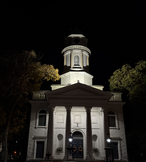 灰白的外墙、圆顶的天际线,稳重而不失优雅。走进内部,托斯卡纳柱撑起穹顶,光从高窗倾泻而下,映在木椅与讲坛上。整点的钟声回荡在空气中——这是金斯顿最稳定、也最具代表性的报时之一。它的声音几乎每日可闻,成为城市生活的呼吸与节奏。